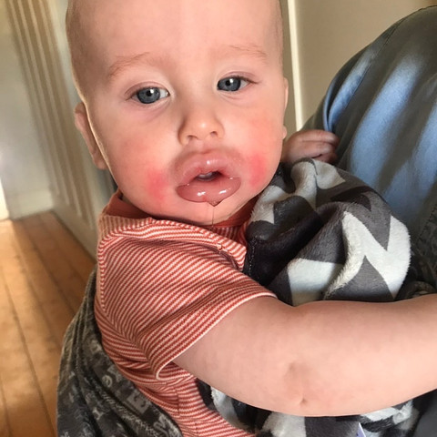 At nine months old Kohen had a taste of hummus on a rice cake. His only known allergies were milk and egg, so I assumed I was passing him an utterly safe food to try. Instantly he started to cough. I picked him up out of his high chair, and then he vomited, I turned him around to wipe his face and noticed his lips looked slightly swollen. My heart sunk; I knew it was the start of an allergic reaction (but not like any reaction I had dealt with before, there was no itchy hives).